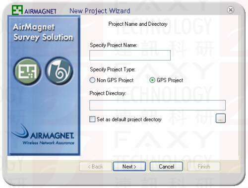 創建一個室外勘察工程:1) 啟動AirMagnet Survey 并單擊File>New Project..。 出現New Project Wizard 界面。