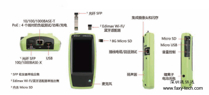 銅纜 光纖,同時可選WiFi、藍牙、低功耗藍牙BLE功能。 通過購買 Edimax* N150 2 合 1 Wi-Fi 和藍牙 Nano USB 適配器,進一步擴展 LinkRunner G2 的功能,支持 IPv4 和 IPv6 網絡。