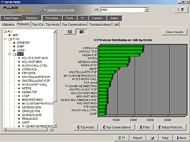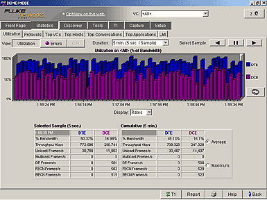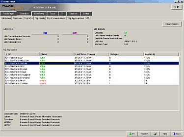 可以查看很多利用率統計數據。檢測所有VC或某個獨立VC的數據,從5秒鐘到一周的報告都可以存儲在廣域網分析儀中。這樣可以驗證帶寬的可用性,確保服務被恰當分配,帶寬資源不被浪費,將應用按優先權進行規劃。