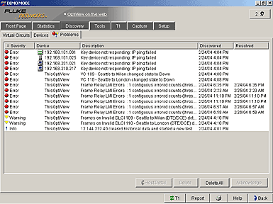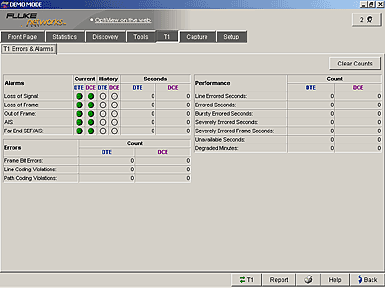 OptiView 廣域網分析儀可以探測出發生在T1/E1 鏈路上的最常見錯誤和告警。檢測到的告警包括信號丟失、幀丟失、不相符幀、AIS/RDI 以及遠端 SEF/AIS。對于DTE和DC這些告警被分別監測,還包括當前和歷史的告警時間以及鏈路在給定給定告警狀態中的秒數。對于幀位錯誤、鏈路代碼干擾和路徑代碼干擾的錯誤包計數也按 DTE 和 DCE 分別表示。最后,顯示根據 ANSI?T1.231 的性能統計數據,例如鏈路錯誤秒數、錯誤秒數、突發錯誤秒數、嚴重錯誤秒數、無效秒數以及降級的分鐘數。所有的錯誤報告都可以以易于讀取的HTML格式被打印或者轉發。